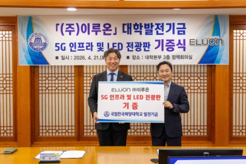 국립한국해양대는 21일 ㈜이루온(대표이사 이영성)에서 5G 인프라 및 LED전광판을 기증했다고 밝혔다. ‘5G 인프라 및 LED 전광판 현물 기증식’에는 류동근 총장과 이영성 대표이사 등 양 기관 주요 인사들이 참석했다.